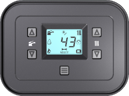 • Visualizzazione temperatura sanitaria e riscaldamento da display