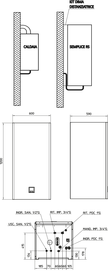 | Attacchi idraulici impianto | 3/4" GAS M | |