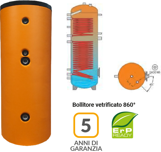 Vasi di espansione a membrana fissa in gomma epdm resistente a picchi di 130° per brevi periodi. Flangia in acciaio al carbonio zincata aggraffata. Precarica 2.5 bar.