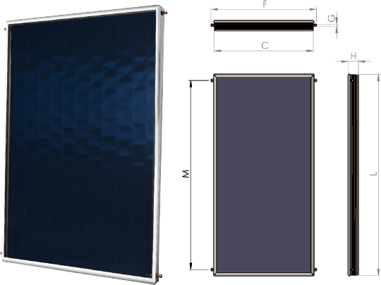 - piastra solare captante con tubi collettori diametro 22 mm, assorbitore con trattamento altamente selettivo al titanio saldata a laser;