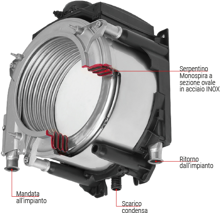 - Scambiatore premix VALMEX con scocca in composito e mono-serpentino in acciaio INOX privo di saldature